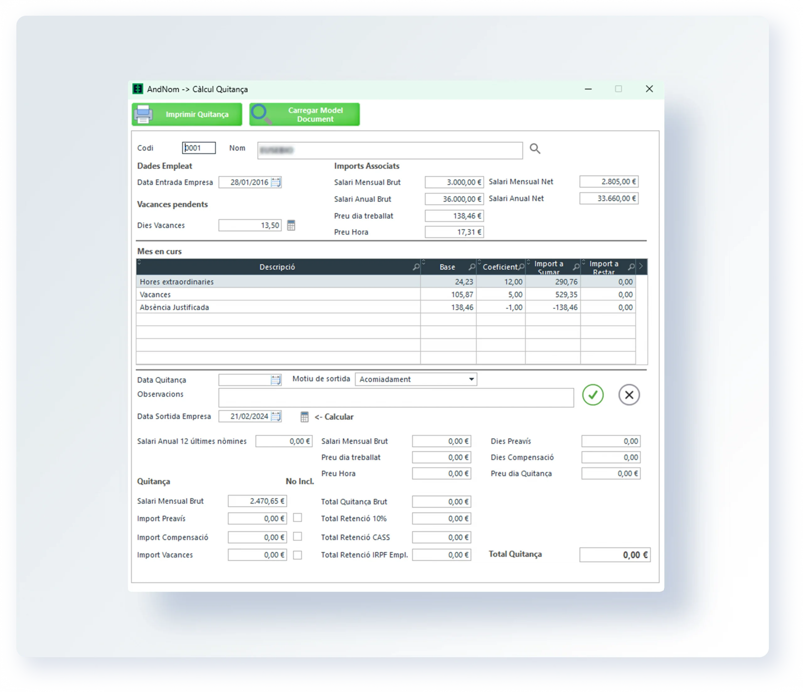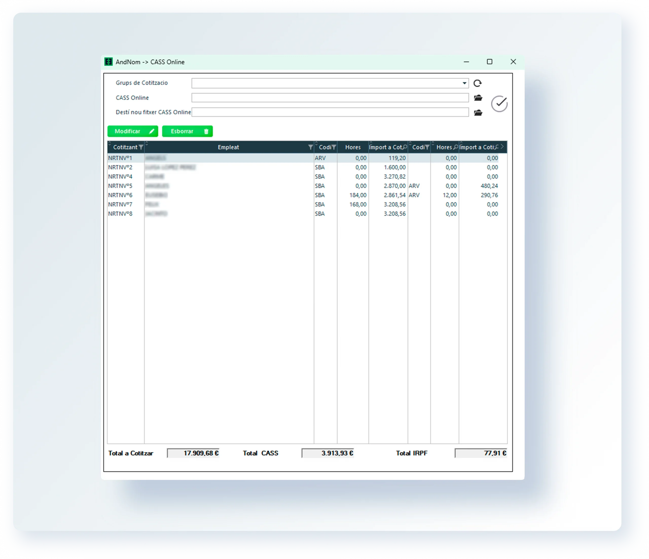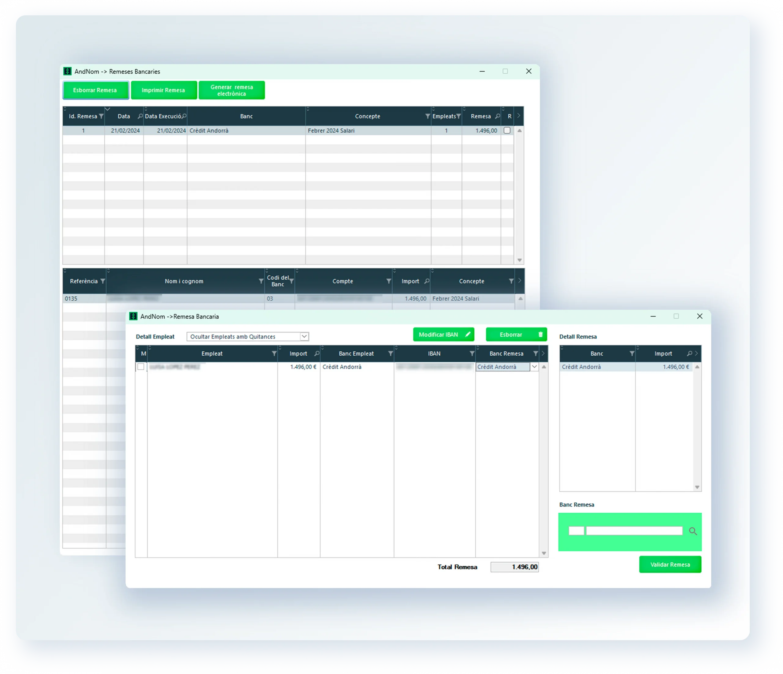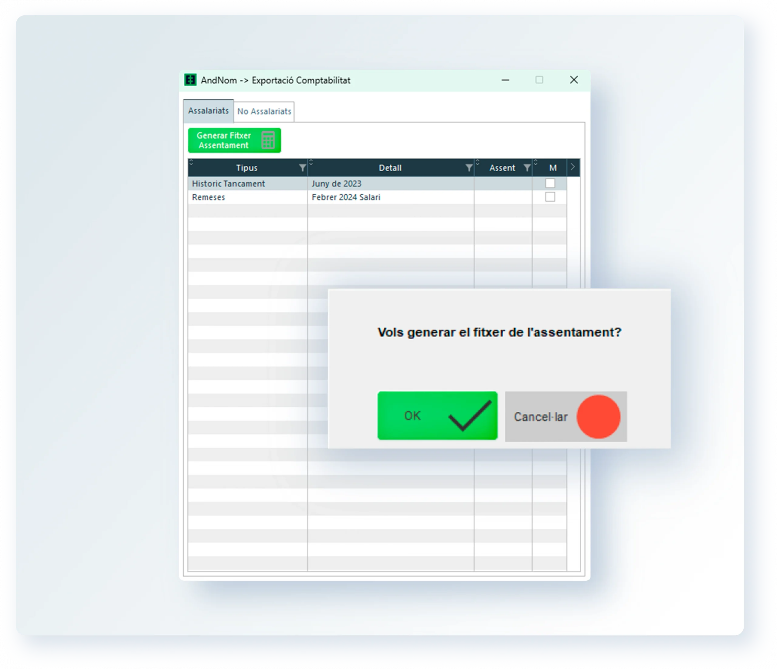 AndNom automatitza el càlcul de nòmines, les variables salarials, la generació de remeses bancàries i la gestió de vacances, baixes i hores treballades.
