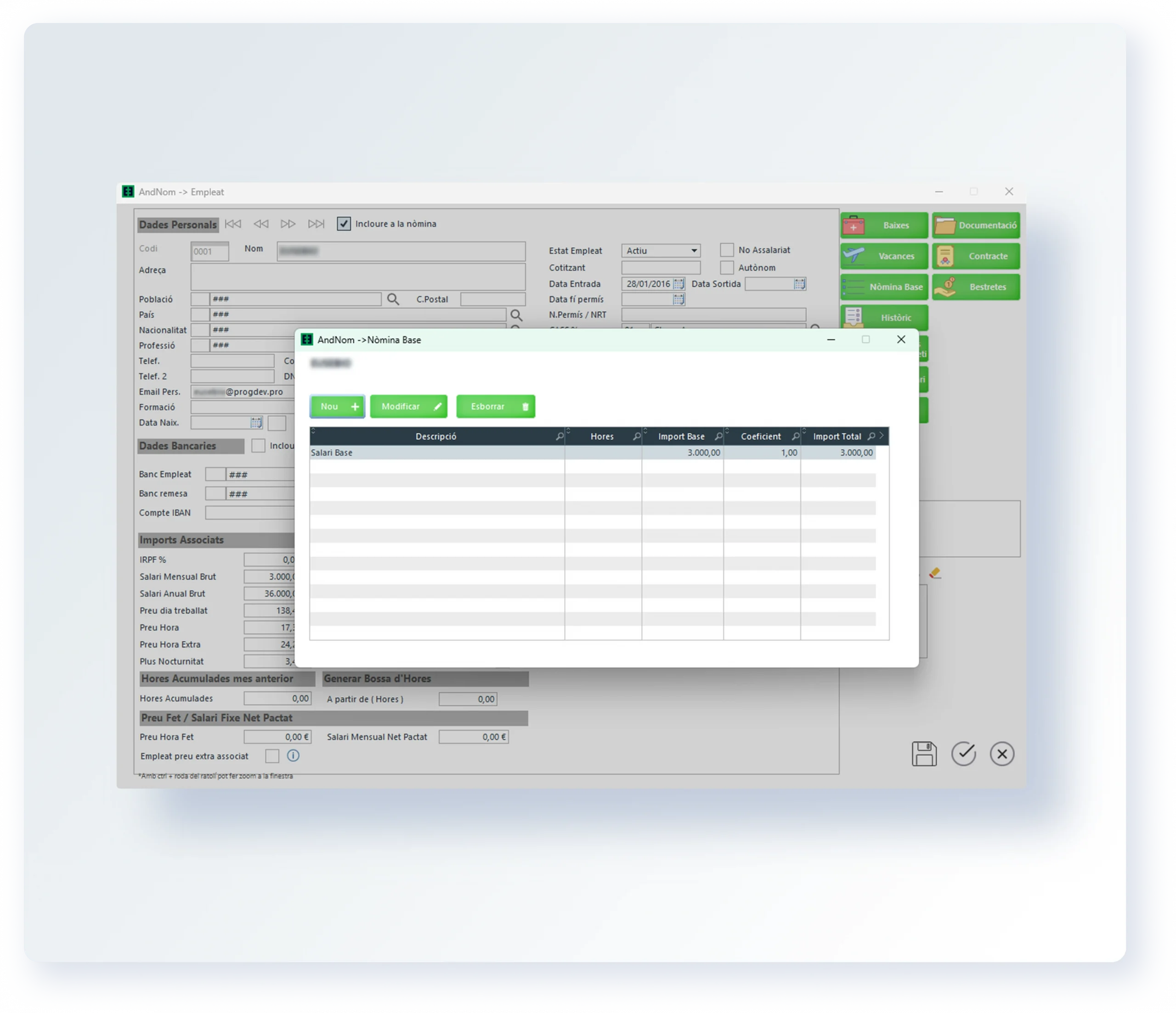 Amb AndNom, generar nòmines base es converteix en un procés senzill i eficient. Aquest aspecte fonamental del sistema permet a les empreses calcular de forma ràpida i precisa els salaris bàsics dels seus empleats.