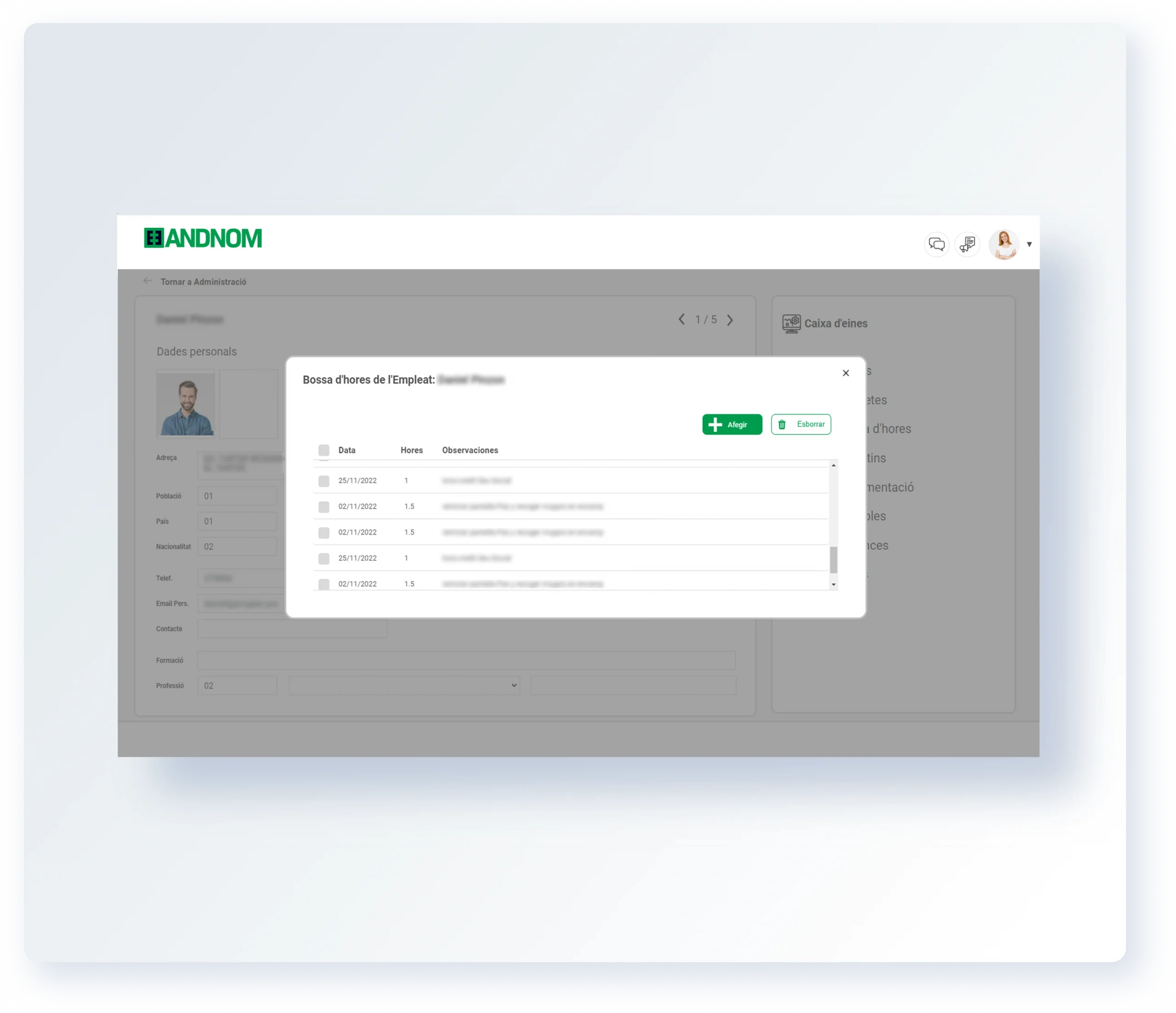 La web d’AndNom simplifica la gestió del personal i millora la comunicació entre empleats i empresa, facilita els tràmits i optimitza els processos laborals des de qualsevol lloc i en qualsevol moment.